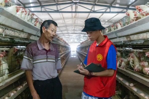 实践队员采访开州区大型养鸡场负责人