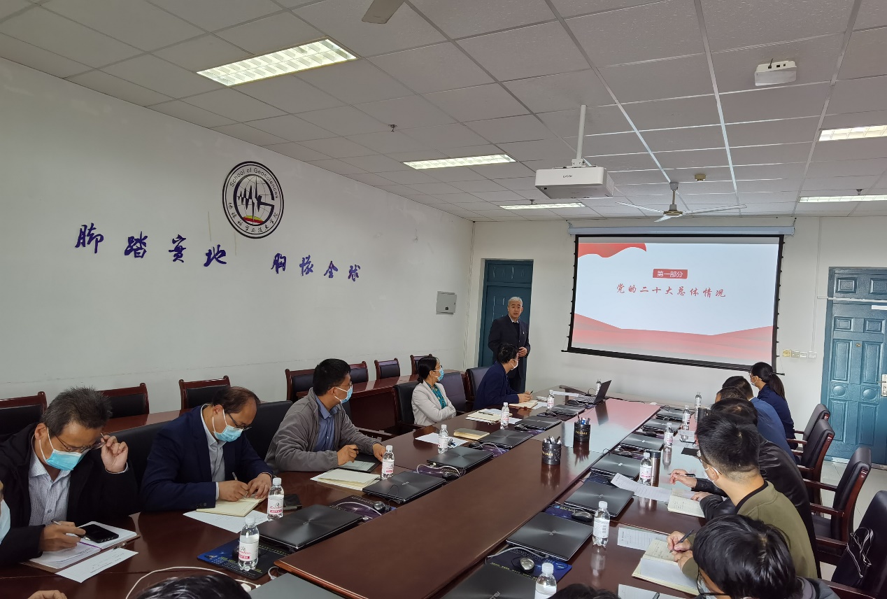 会上,赵放辉带领与会人员共同回顾了党的二十大召开盛况,重点学习了党的二十大报告精神。赵放辉表示,党的二十大是在全党全国各族人民迈上全面建设社会主义现代化国家新征程、向第二个百年奋斗目标进军的关键时刻召开的一次十分重要的大会,是一次高举旗帜、凝聚力量、团结奋进的大会。党的二十大报告首次把教育、科技、人才进行“三位一体”统筹安排、一体部署,并摆放在“全面建设社会主义现代化国家的首要任务”即“高质量发展”之后的突出位置,极具战略意义和深远影响。作为教育工作者,我们要认真学习报告精神,深刻领会核心要义,强化担当意识,敢于担当作为,在学校“十四五”建设和新一轮“双一流”建设中贡献力量。