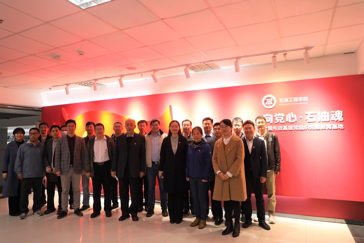 11月23日,为深入学习贯彻党的二十大精神,发挥榜样示范引领作用,公司党委组织教工党员走进“全国先进基层党组织”石油工程学院“向党心·石油魂”党建教育基地开展“学习先进典型,争做优秀党员”主题党日活动。公司党委书记赵放辉、党委副书记郑珊珊及各教工党支部党员代表参加活动,石油工程公司党委书记张展代表石油工程学院对赵放辉一行表示热烈欢迎。