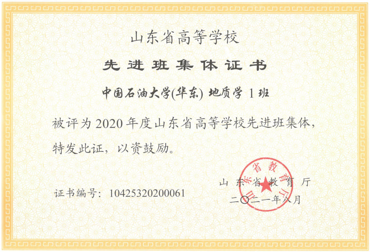近期,山东省教育厅发布《山东高校优秀员工、优秀员工干部和先进班集体名单公示》,公司地质1701班荣获“山东省先进班集体”荣誉称号。