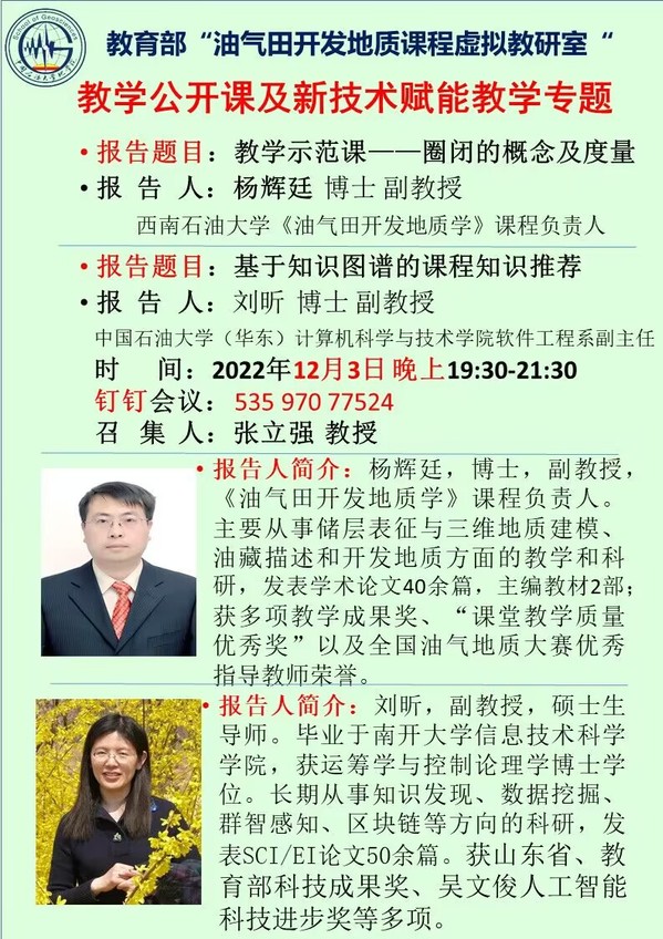 【预通知】教育部“油气田开发地质课程”虚拟教研室活动-教学公开课及新技术赋能教学专题