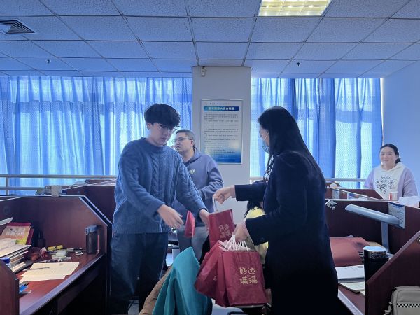 “福袋牛奶和巧克力,是希望同学们在冬季也感到一丝温暖;贺卡上是2019级其他员工对2019考研同学最真切的祝愿。礼物虽小,重在心意!希望各位考研的同学都能实现自己的目标,成功上岸!”本次活动负责人孙清在活动结束之后,感谢各位员工和教师们对活动的支持。