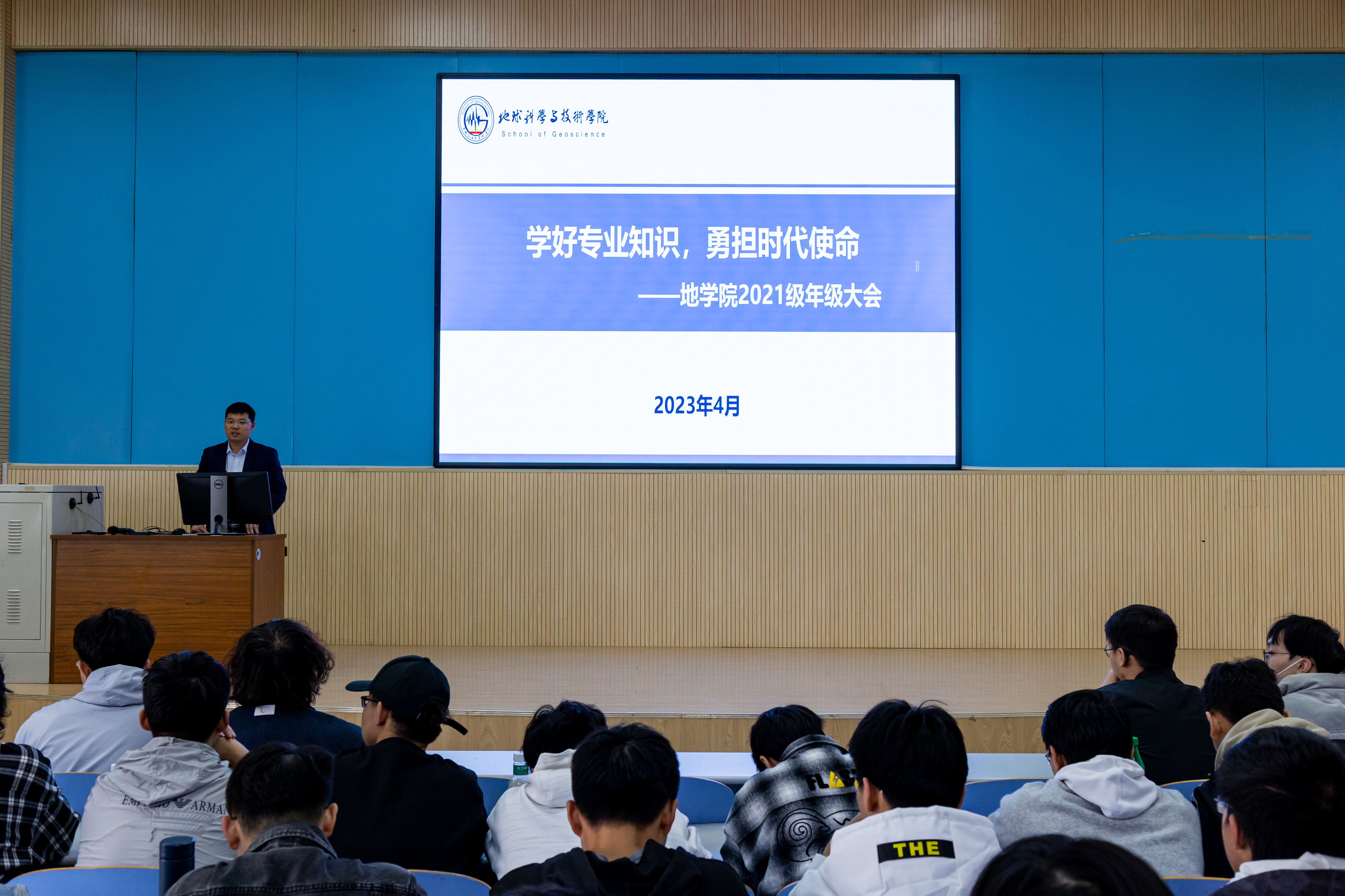 “十老员工标兵”荣誉称号获得者张东林分享了他的科技创新经验,他以自身的参赛项目为出发点,通过介绍竞赛要求、时间节点、参赛材料、团队组成等内容,分享自己的备赛心得,鼓励学弟学妹积极参加创新创业活动,力争取得双创成果。随后,“王涛英才奖学金”获得者高张永瑞进行了主题为“选对方向,下定决心”的经验分享,他介绍了自己将大目标划分为小计划并逐步实现的经验,并以地球物理学专业为例分析了本科毕业后深造和就业的方向,鼓励学弟学妹坚定理想抱负,朝着自己设定的目标不断努力。最后,2021级本科生杨启航介绍了自己的学习经验,他指出取得较好成绩的关键在于设立较高的目标和强大的执行力,将拼搏向上、永不放弃、超越自信的体育精神融入到学习中,让同学们深受鼓舞,更加刻苦学习,力争上游。