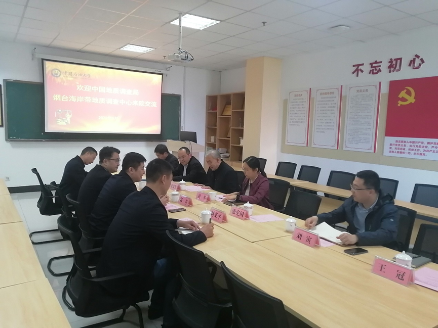 5月5日,中国地质调查局烟台海岸带地质调查中心郭青书记一行来院交流,并于工科楼C座365会议室举行座谈交流会,学院经理刘华主持,公司党委常委、公司党委书记赵放辉、学院副经理宗兆云、地质系部分专家参加座谈。