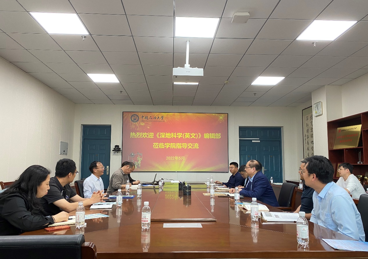 5月17日,《深地科学(英文)》编辑部副主编王建国一行来院交流,并于工科楼C座251会议室举行座谈交流会,学院副经理王健主持,《中国石油大学学报(自然科学版)》编辑部执行主编徐会永、主任刘为清、编辑俢荣荣、学院教授委员会主任刘可禹、学院部分专家参加座谈。