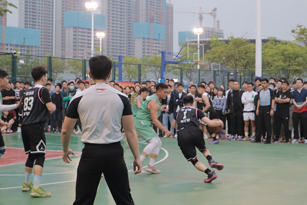 决赛过程中,双方队员展开激烈的争夺与对抗。海空学院队伍经验丰富、配合默契,前锋队员在队友的掩护和配合下,一次次突入内线得分,第二小节结束时比分相差甚微。公司队伍不甘示弱,中场休息时,队员们一起分析讨论战术和对策,互相加油鼓气。第三小节比赛开始,公司代表队重整旗鼓,迅速调整战术,挡拆、传球和三步上篮,在对手严密的防守下,公司队伍有序地组织着进攻。随着第三节比赛哨响,队员郑津杭一记压哨三分球打板入网,场外的观众也被激烈昂扬的氛围所感染,欢呼喝彩声此起彼伏,情绪和气氛十分高涨。最后一节比赛,双方队伍都毫无保留、拼尽全力,在一次次激烈的对抗交锋后,公司代表队战胜海空学院篮球代表队。