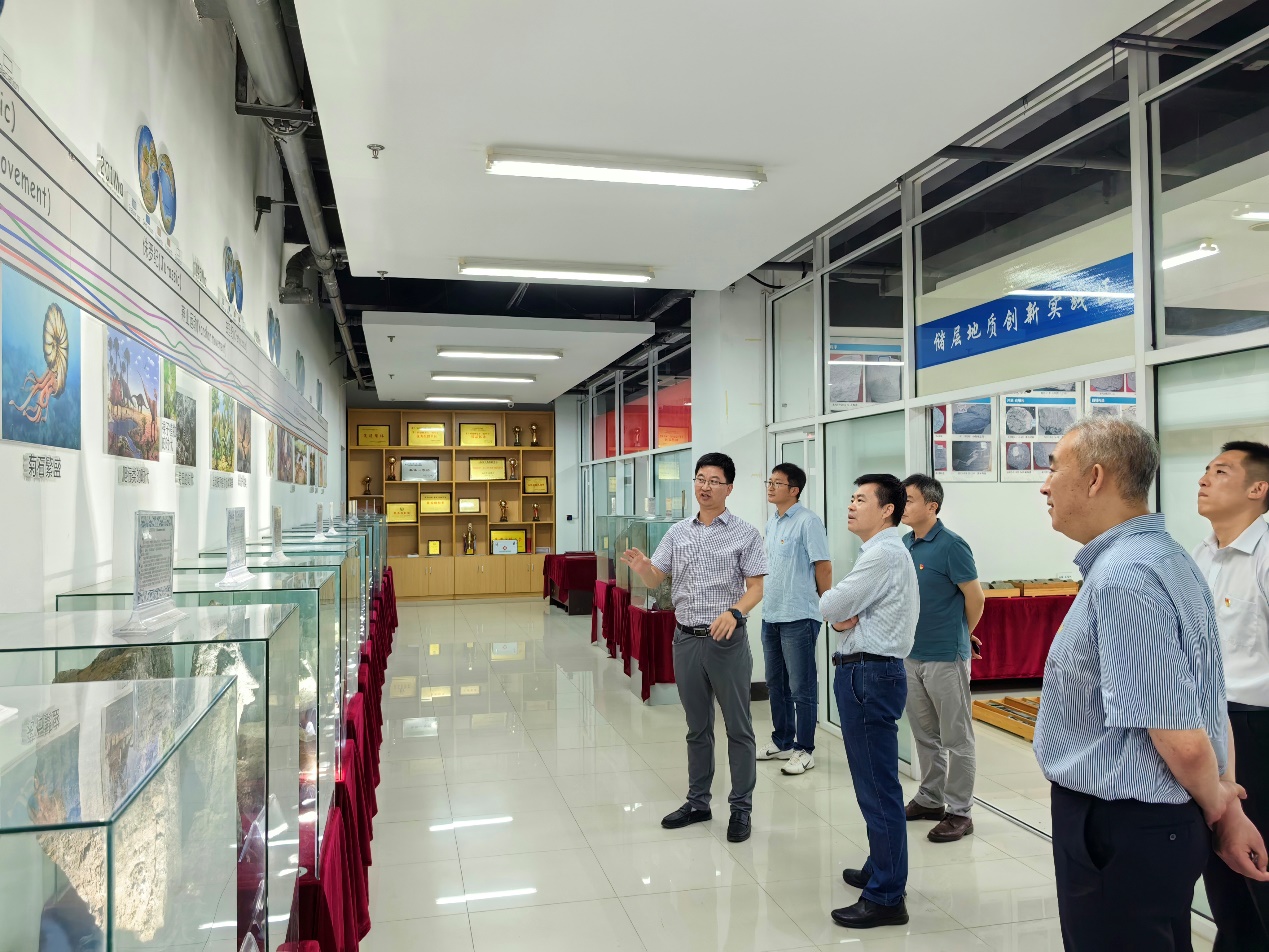 孟凡超为王纪磊一行介绍学院地质博物馆