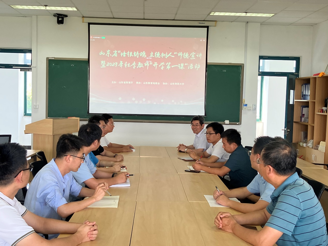 9月4日下午,资源系党支部教师在支部书记张立强教授带领下开展线上、线下收听收看“培根铸魂立德树人”师德宣讲暨2023年秋季教师“开学第一课”活动。
