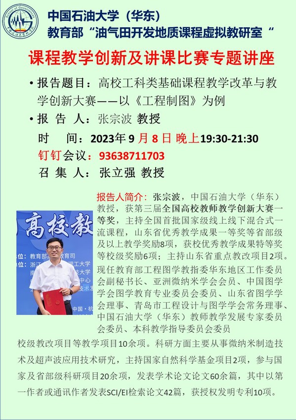 【预通知】教育部“油气田开发地质课程”虚拟教研室活动——课程教学创新及讲课比赛专题讲座