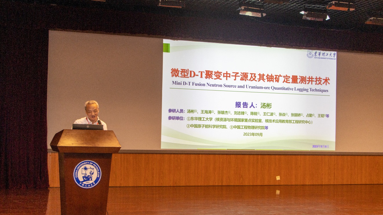 中国工程院院士王双明做了题为《富油煤主要特点与绿色低碳开发》的主旨报告,介绍了面向碳中和愿景下的富油煤等能源绿色低碳转型开发情况。中国工程院院士李宁院士做了题为《“移动式井场岩样集成连续测量成像系统”一期成果在“富油煤”勘探发现中的应用》的主旨报告,展示了他主导研发的中国石油天然气集团公司关键核心技术重大科技攻关项目的最新进展。东华理工大学副董事长汤彬教授做了题为《微型D-T聚变中子源及其铀矿定量测井技术》的主旨报告,介绍了核测井技术的最前沿研究成果。