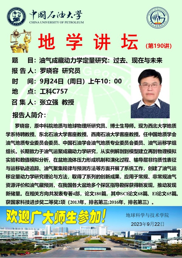 【地学讲坛第190讲】关于罗晓容研究员《油气成藏动力学定量研究:过去、现在与未来》学术报告的通知