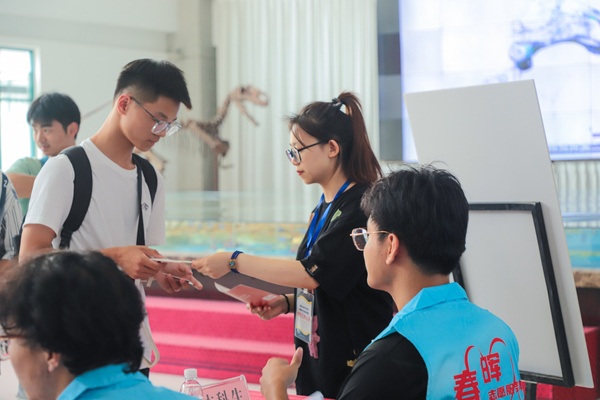 迎新现场为新生设置了许多互动体验类项目,帮助新生深入了解学院,明确未来的学涯规划。其中,“青春信箱”——给步入大学自己的一封信活动受到了新同学们的一致好评。在报到前,新生们都在纸上写下了自己下一个阶段的规划,与上大学后的自己来一次穿越时空的直面。朱家舒在纸上写到:“未来我会不断学习,深入开发自己的兴趣爱好,好好规划自己的未来,找到自己的发展方向。”经过评选,张硕宣作为获奖者获得了一份“携石问路”精美礼品。此外,在大厅中间,还摆放着一块带有中国地图的宣传板,新生们在“赤诚的心”贴纸上写下自己的名字,贴到地图上家乡的位置,“五湖四海相聚石大,携手并进从‘新’出发!”
