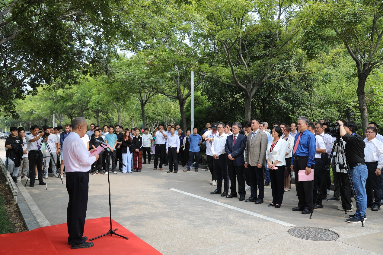 揭幕仪式上,李宁、王勇共同为张庚骥先生塑像揭幕,戴彩丽、李勇、张庚骥先生弟子李善军博士致辞。