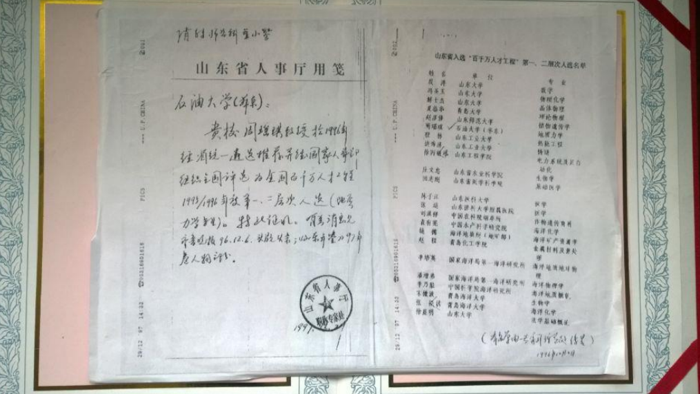 1996年,公司油气资源与环境地质研究所所长周瑶琪入选全国“百千万人才工程”第一、二层次人选(地质力学专业),这是公司首位入选国家级人才工程的教师。