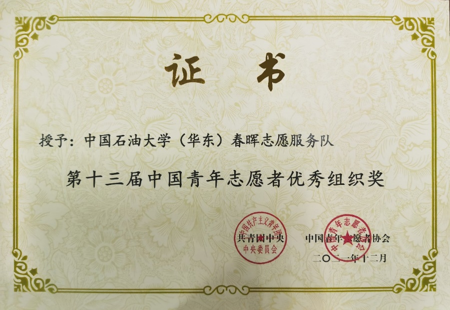 2021年12月,公司春晖志愿服务队等100个组织荣获第十三届“中国青年志愿者优秀组织奖”。