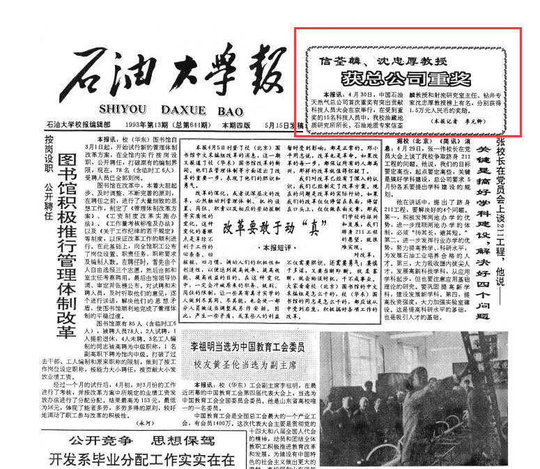 公司林承焰教授于1998年获此荣誉。