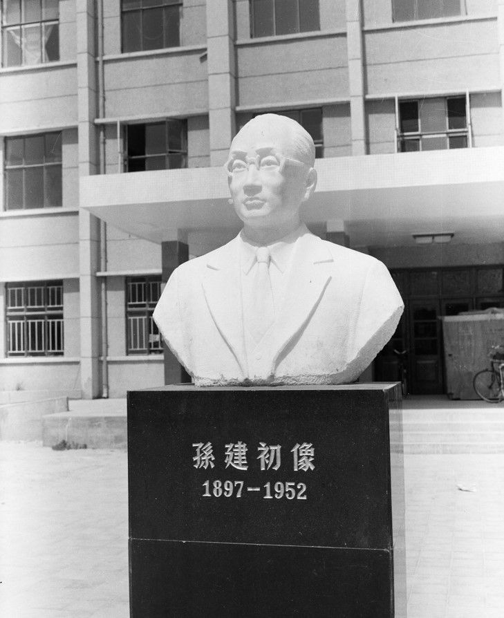 1986年10月4日,孙建初雕塑在东营校区勘探馆门前揭幕。