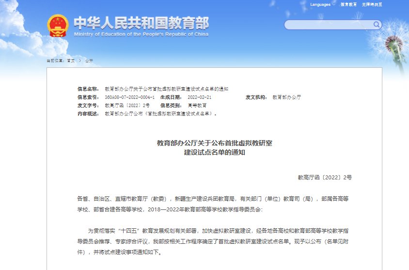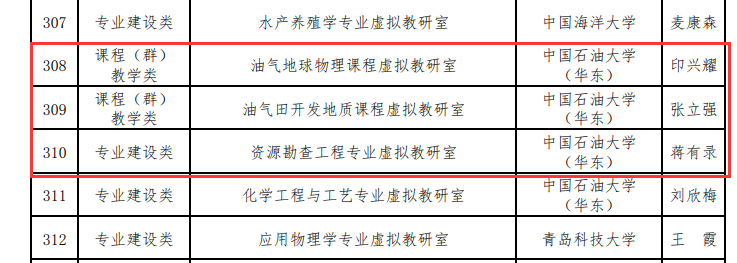 2022年2月,教育部办公厅公布了首批虚拟教研室建设试点名单,公司共有4个建设项目入选,其中公司申报的3项建设项目全部获批,包括蒋有录教授负责的资源勘查工程专业虚拟教研室、印兴耀教授负责的油气地球物理课程虚拟教研室、张立强教授负责的油气田开发地质课程虚拟教研室。