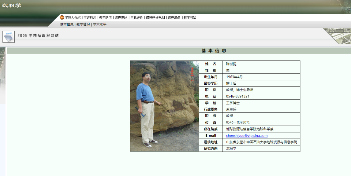 2004年,陈世悦教授负责的 《沉积学》入选山东省精品课程。目前,学院共建有山东省精品课4门,分别为陈世悦教授负责的 《沉积学》(2004年)、戴俊生教授负责的《构造地质学》(2005年)、国景星教授负责的《油气田地下地质学》(2006年)、董春梅教授负责的《矿物岩石学》(2007年)。