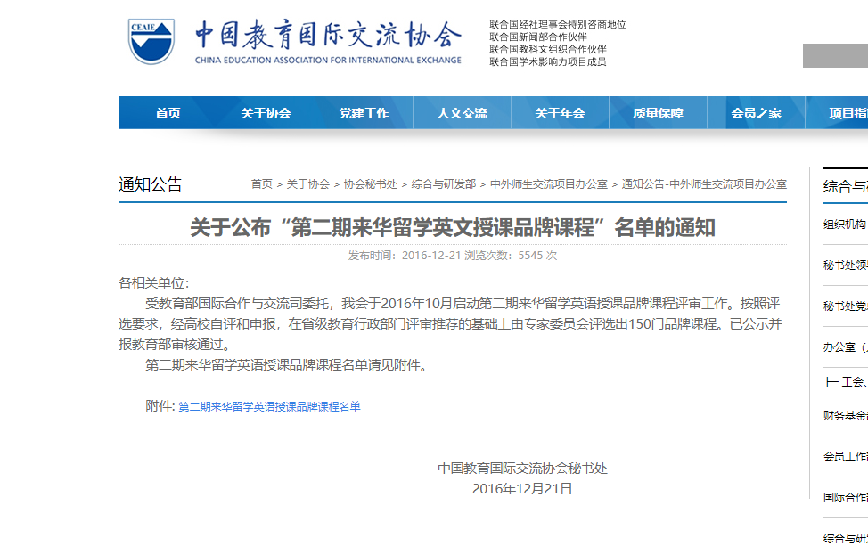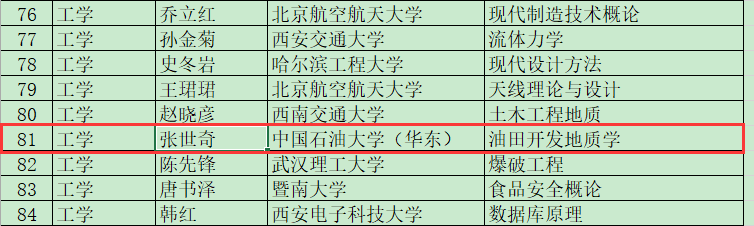 2016年12月,教育部公布第二期来华留学英文授课品牌课程评选结果。公司张世奇教授主持申报的“油田开发地质学”课程入选。