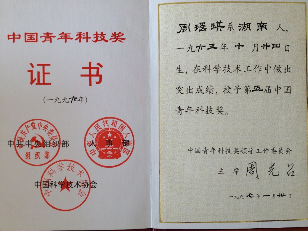 1997年3月22日,第五届中国青年科技奖颁奖大会召开,公司资源系教授、博士生导师周瑶琪因其在事件地质学、化学层序地层学、太阳原始星云原子团簇等方面的独创性工作荣获此奖。