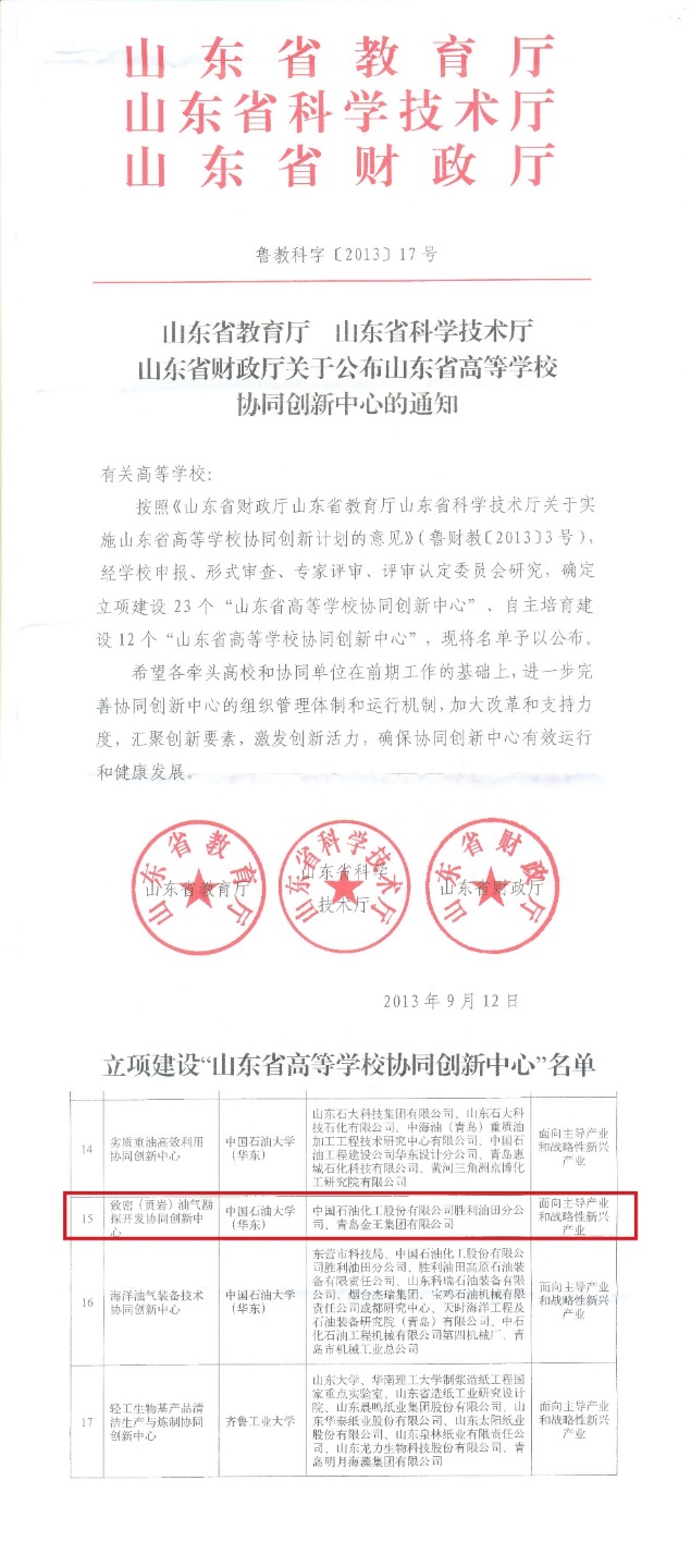 2008年2月,山东省委、省政府授予油气地质与勘探创新团队“山东省优秀创新团队”荣誉称号,并记集体一等功。这是公司第一个省级“优秀创新团队”。