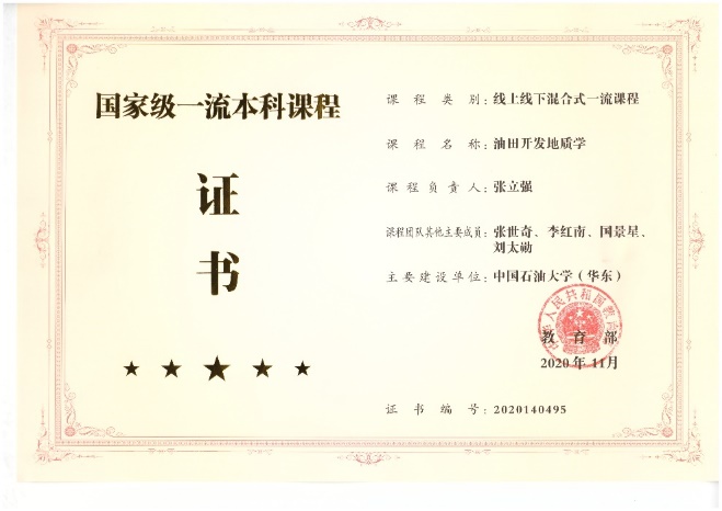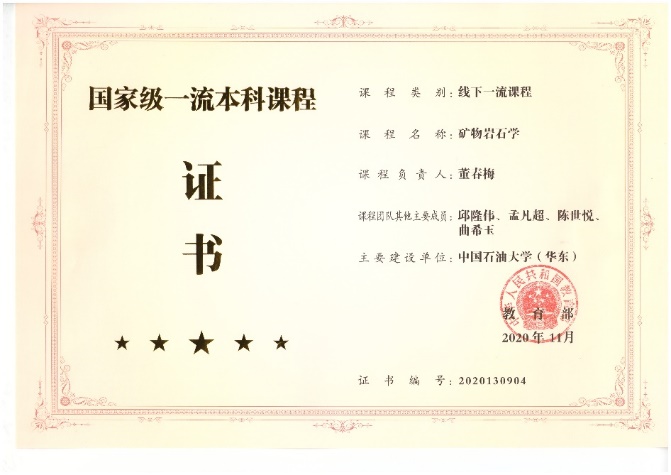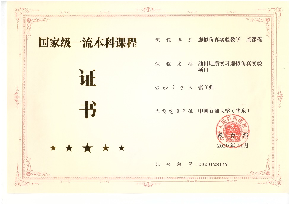 2020年11月,教育部公布首批国家级一流本科课程名单,公司地震勘探原理、矿物岩石学、油气地质与勘探、油田开发地质学等4门课程入选。