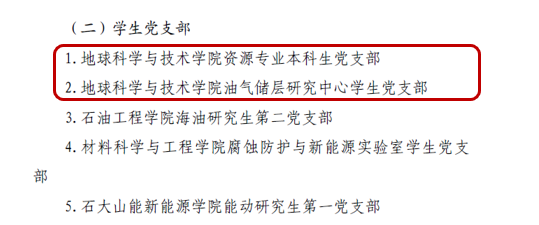 10月10日,《关于公布第三批学校新时代党建“双创”和第二批“双带头人”教师党支部书记工作室培育创建单位名单的通知》发布,学院资源专业本科生党支部、油气储层研究中心员工党支部入选公司党建工作样板支部培育创建单位。
