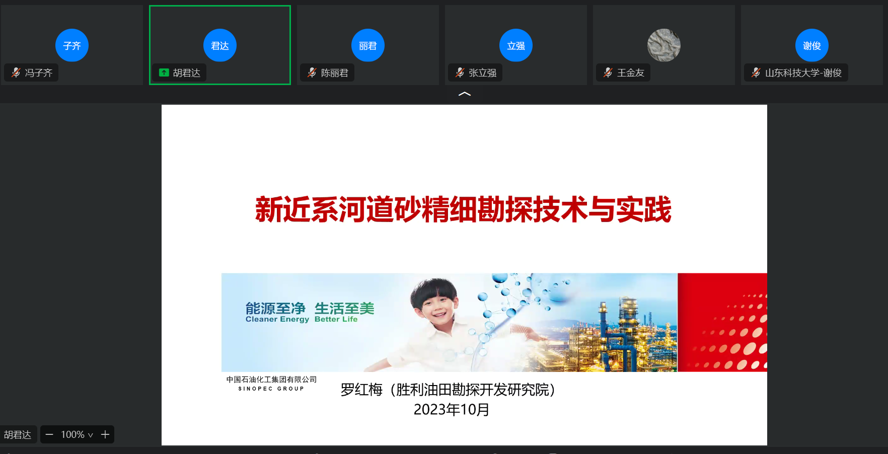 2023年10月14日下午,伟德国际1946官网、教育部"油气田发地质课程虚拟教研室"举办线上、线下行业前沿专题讲座,邀请了中国石化胜利油田勘探开发研究院首席专家罗红梅研究员作题为《新近系河道砂精细勘探技术与实践》的行业前沿专题讲座,资源系部分教师、伟德国际1946官网地质资源与地质工程博士研究生、硕士研究生,以及来自全国十余所高校科研院所150余人参加了线上、线下会议,教育部虚拟教研室主任、资源系主任张立强教授主持会议。