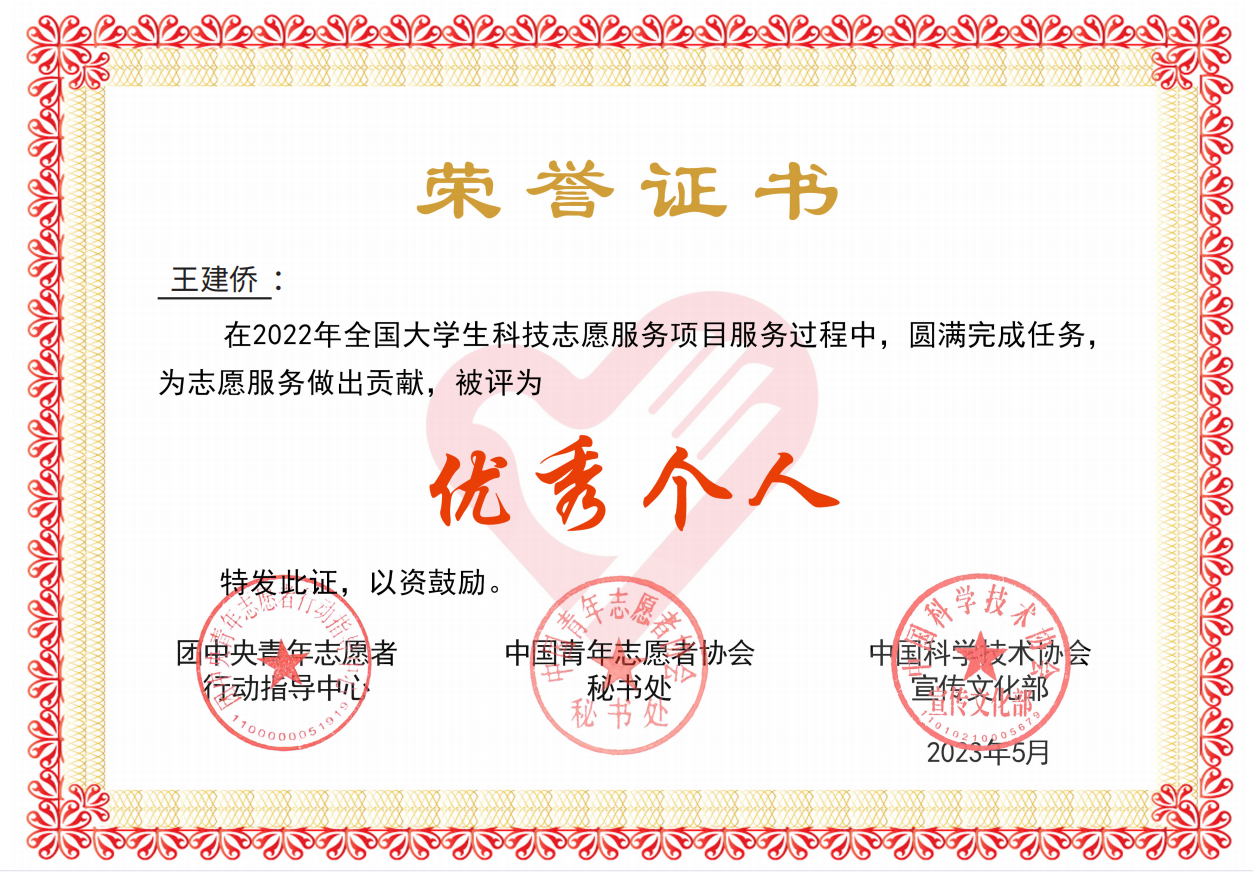 图3 王建侨被评为“优秀个人”