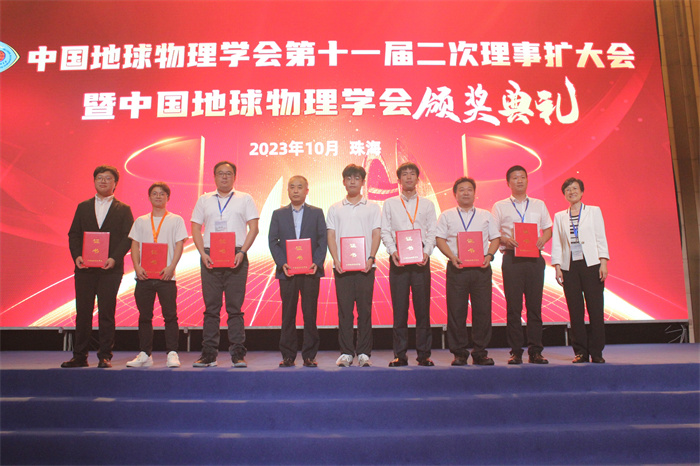 在年会上,中国地球物理学会召开了第十一届二次理事扩大会议暨中国地球物理学会颁奖典礼,印兴耀教授、宗兆云教授、曹丹平教授作为代表参加了理事扩大会议。在颁奖典礼上,公司印兴耀教授团队完成的项目“裂缝型油气储层地震预测理论及关键技术”获2023年中国地球物理科学技术进步一等奖,符力耘教授参与完成的项目“致密油气储层岩石物理模型与大面积地震检测技术”获2023年中国地球物理科学技术进步二等奖。杨继东教授获傅承义青年科技奖,李坤副教授获刘光鼎青年科技奖,公司博士毕业员工程广森获2023年中国地球物理学会优秀博士论文。公司员工张向智、张纪伟、陈宣好、燕卓麒组建的团队获第八届“创新杯”全国老员工地球物理知识竞赛奖地震测井组一等奖;王冰、张浩、罗子良、赵杰组建的团队获第八届“创新杯”全国老员工地球物理知识竞赛奖重磁电组三等奖。公司员工宋磊、于松鹤等获2022年地球科学联合学术年会优秀员工论文。
