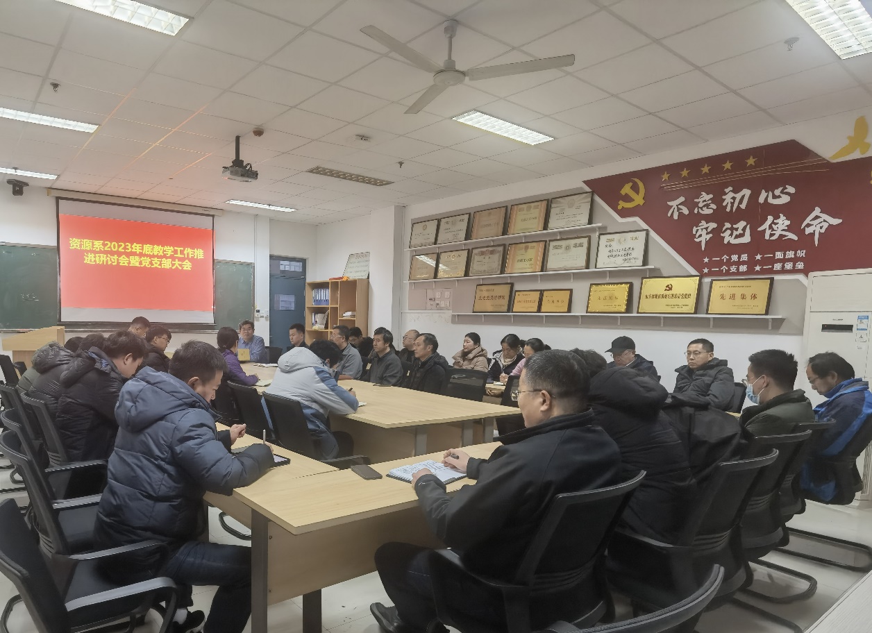 2023年12月13日下午,资源系召开党支部大会研讨2023年度教学工作推进情况,在校资源系全体教师参加了本次支部大会,支部书记张立强教授主持。