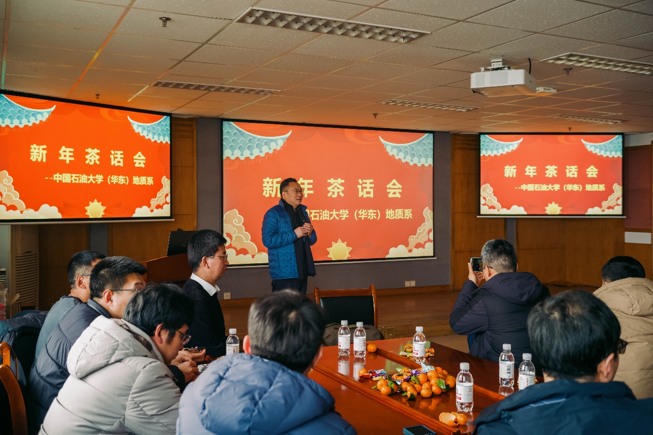 2024年1月12日下午,本学期的最后一天,地质系全体教师在C座757报告厅举行2023年度工作总结会和2024年新春茶话会,邀请部分在青退休教师参加,副董事长操应长教授出席会议并发表讲话,会议由地质系主任吴孔友教授主持。
