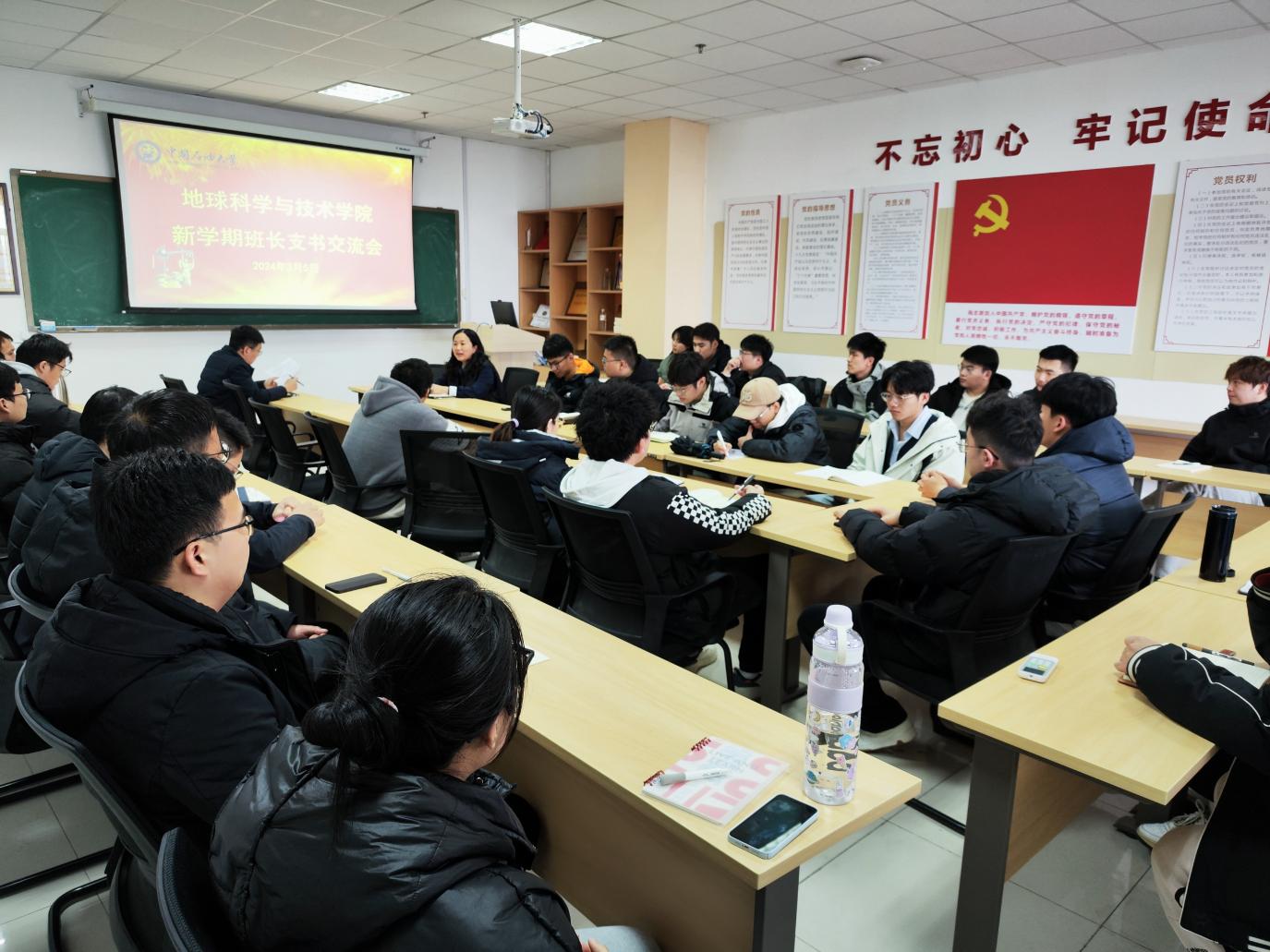 杨建敏从新学期安全教育入手,指出班长团支书应与辅导员一起更好地投入到员工工作中去,多与同学交流了解员工情况,做好安全摸排,排除安全隐患。要通过多方渠道掌握员工的全面情况,提升事件处理的能力。根据新学期的工作计划从人身安全、心理健康、意识形态安全、宿舍与工作室安全等方面对研究生班级的发展、集体建设、生活作风等提出了建议,要求各班班委要“提高站位,走进宿舍”,员工干部要主动担当、正向引导、以身作则、积极作为,做好班级组织建设与思想引领工作,营造良好班级氛围,和同学们一起快乐科研。栗磊再次强调了安全问题,并从班级建设、就业形势与要求、出入校与请销假制度、电动车管理等方面进行了详细说明,强调各班要紧跟形式,不断提升个人工作能力,推动班级更好发展。
