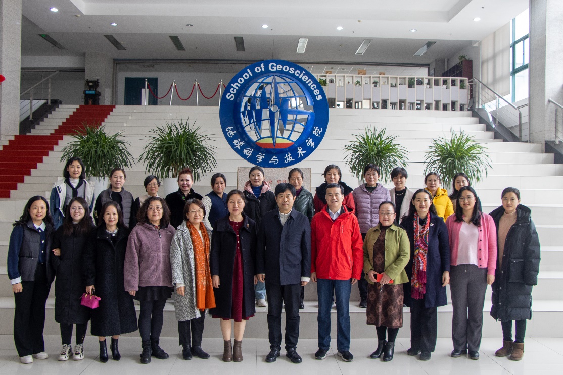 公司领导与女教工合影
