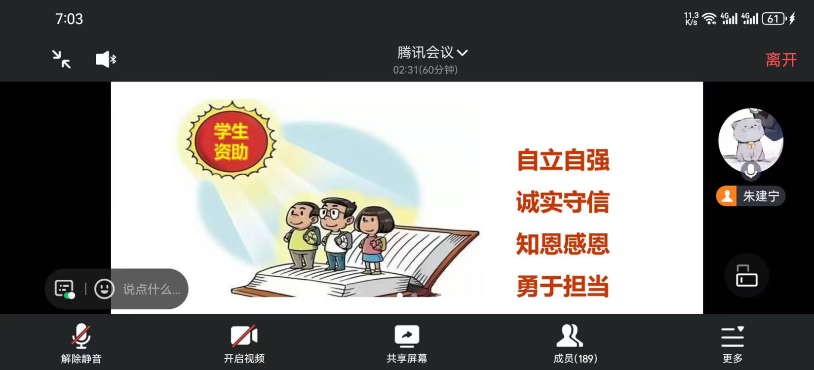 朱建宁面向高中母校员工开展线上资助宣传
