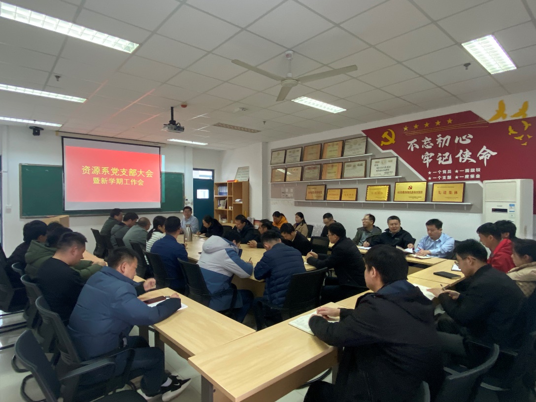 3月13日,资源系党支部组织全系教师学习学校新学期工作会精神,布置2024年重点工作,会议由党支部书记张立强主持。