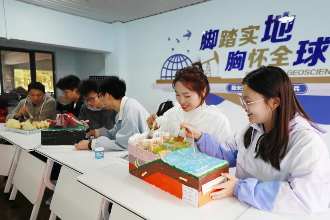 员工在社区里制作地质模型