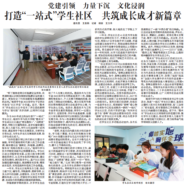 3月30日,中国石油大学报以《党建引领 力量下沉 文化浸润 打造“一站式”员工社区 共筑成长成才新篇章》为题,报道了伟德国际1946官网在社区育人综合体方面的探索与实践。