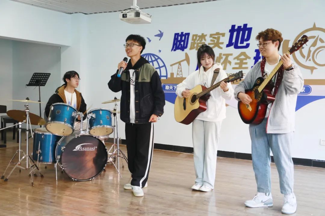 在员工社区多功能活动室内,各类乐器演奏出了一曲“中西合璧”的交响曲。社区活动室是使用频率最高的场地,声乐社、器乐社、舞蹈社、话剧社,常常在周末齐聚于此,展开一场艺术的盛会。在这里,艺术表演、心理团辅、员工团建等各类丰富校园生活的小活动都在员工社区的舞台上尽情展现。此外,学院还利用社区优势,组织编演“中国石油测井之父——王曰才”话剧、“勘探之光”舞蹈等原创文艺作品,让勘探精神融到员工日常生活之中。
