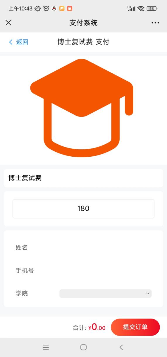 备注:硕博连读及本研一体考生都须缴纳复试费180元。