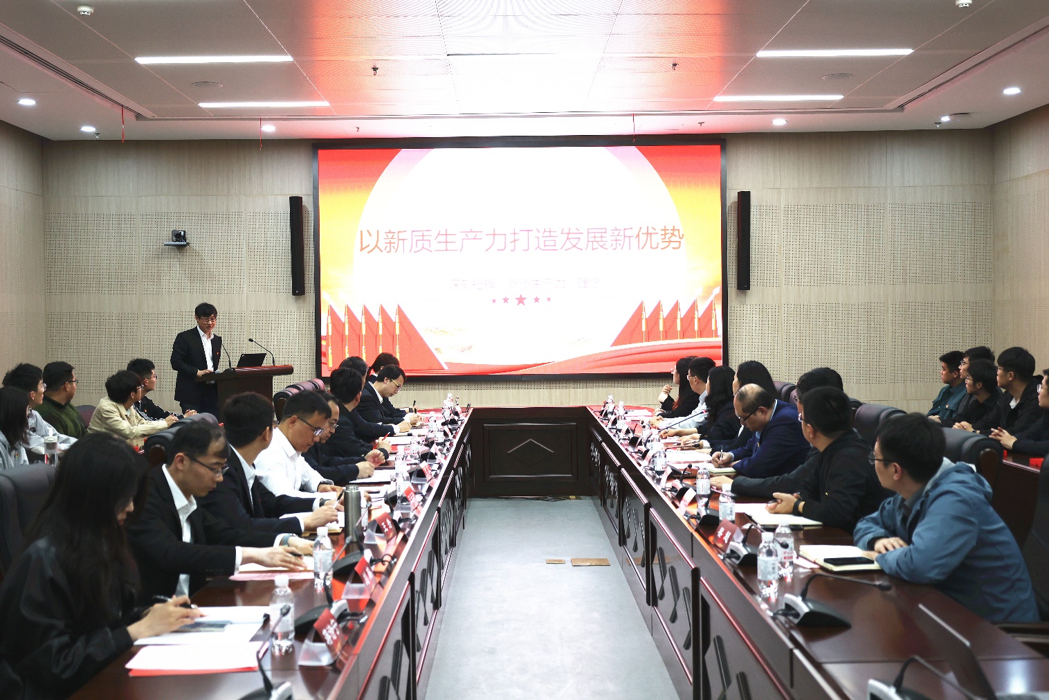 会上,公司油气储层研究中心员工党支部书记韩婉璐带领学习了新修订的《中国共产党纪律处分条例》第一章;胜利油田勘探开发研究院沾车勘探研究室党支部书记张盛以《以新质生产力打造发展新优势》为题对“习近平总书记关于科技自立自强有关论述”进行解读分享。