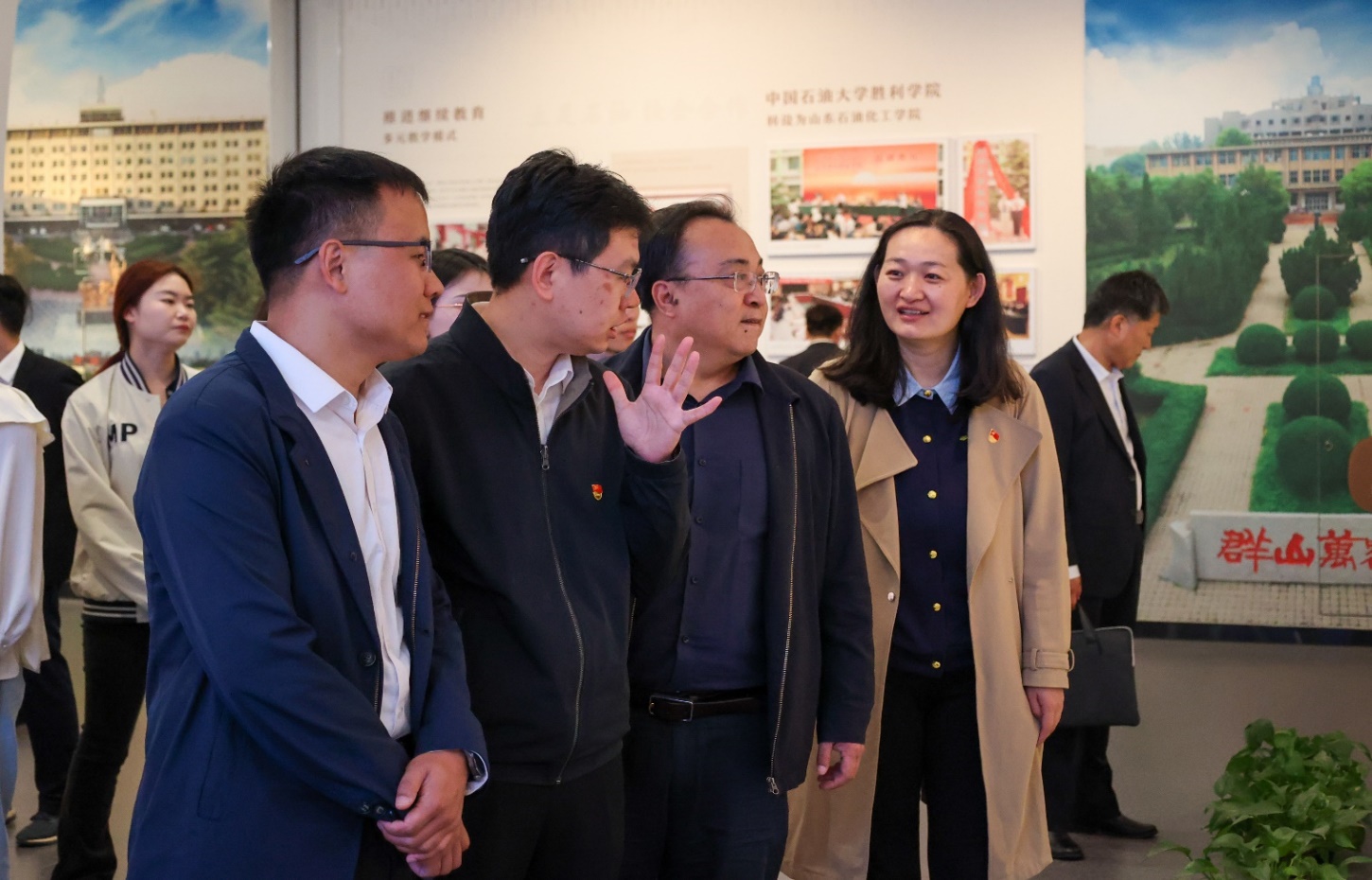 胜利油田李政一行在地球科学与技术公司党委副书记郑珊珊等人的陪同下参观了校史馆。
