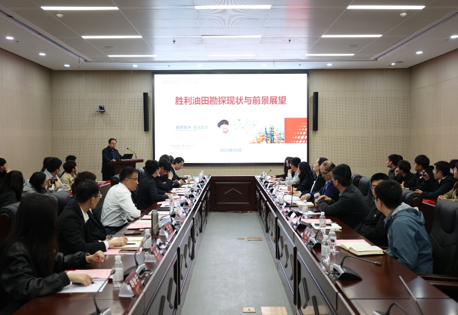 会上,胜利油田勘探开发研究院首席专家李政对胜利油田勘探及能源前景展望进行分享,重点讲解了断陷盆地勘探过程中用到的一些复杂技术,让在座的员工党员清楚的了解到勘探一线遇到的难题,激起大家为祖国能源事业奉献的信心与决心!胜利油田党委组织部高级主管李国栋介绍了胜利油田基本情况、人才需求和校园招聘流程等,对研究生关心的问题进行了详细的解答,提出要持续深化合作交流,期待党支部开展更高层次联合共建,优势互补、共同发展,期待石大学子选择“胜利”。