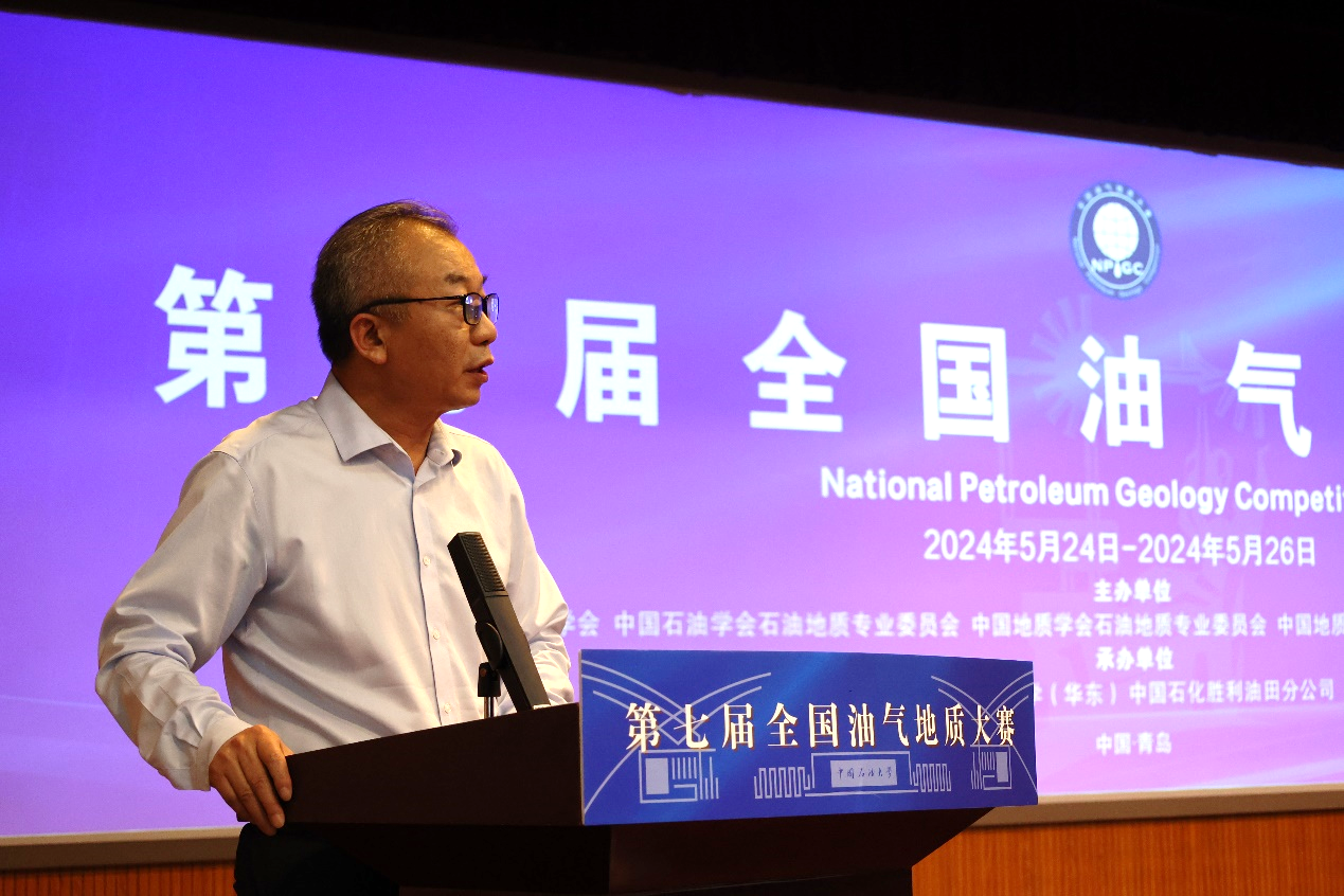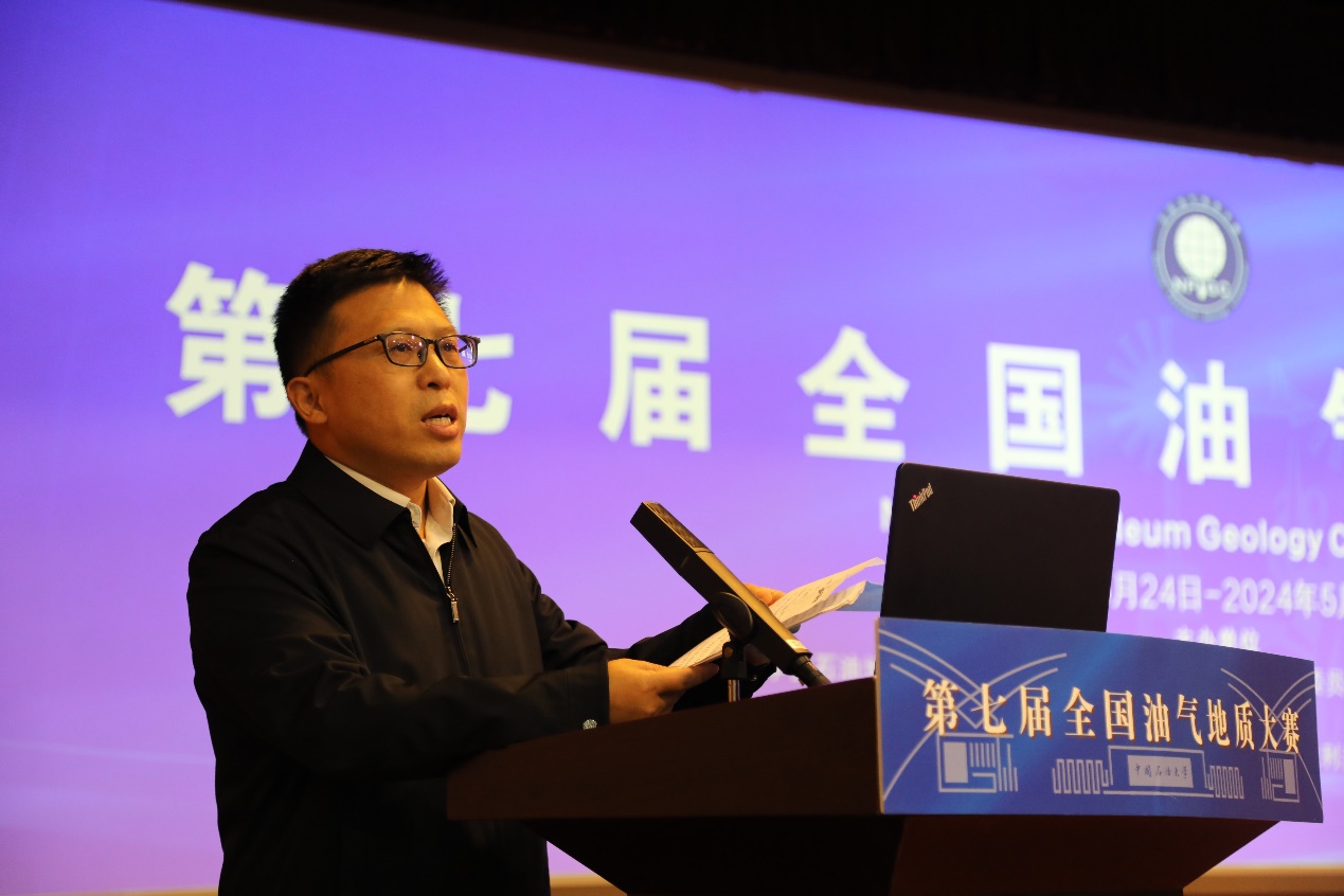张广清代表本届大赛主办单位致辞。他表示,中国石油大学(北京)始终坚持把科技创新作为引领发展的第一动力,把服务国家重大战略需求作为最高追求,聚焦培养能源技术领军人才。近年来,依托全国油气地质大赛,学校坚持以赛促学、以赛促教,让员工能够在实践中不断提升创新思维、专业素养和综合素质,同时在此过程中检验教学质量和人才培养效果。相信本届大赛将继续构建一个全面、立体、有序的竞赛生态,为广大优秀学子提供更多展示自我、挑战自我、超越自我的机会,为各参赛高校、企业的人才培养注入新的活力和动力。
