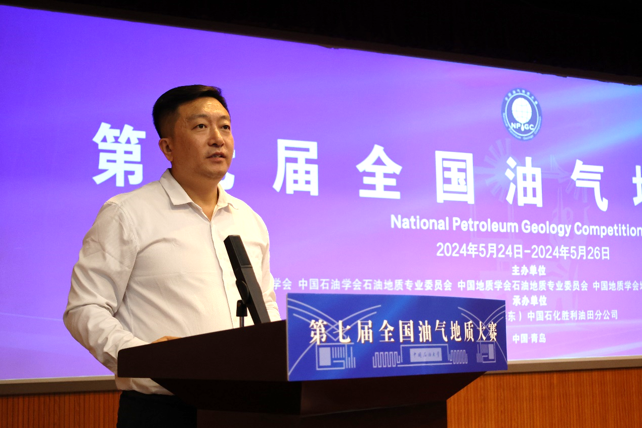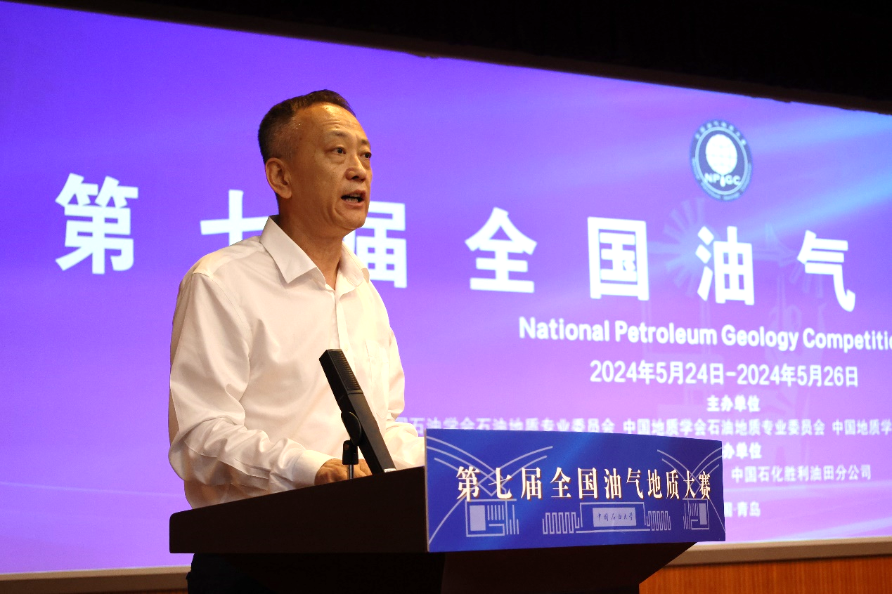 张世明代表本届大赛联合承办单位致辞。他表示,端牢能源的饭碗,迫切的需要理论和技术创新,提升勘探开发效率,有效的保障能源供应的稳定性,促进能源行业的健康发展。本届大赛的举办对于油气地质行业人才的培养具有重要意义,将助力行业高校培养服务国家石油地质发展的创新型、应用型人才。希望广大油气地质学子不断夯实专业基础,提高专业素养,增强专业技能,胸怀梦想、勇担使命、接续奋斗,把个人的价值追求融入到国家油气事业中,努力成为新时代油气地质行业合格的接班人,为保障国家能源安全贡献力量。