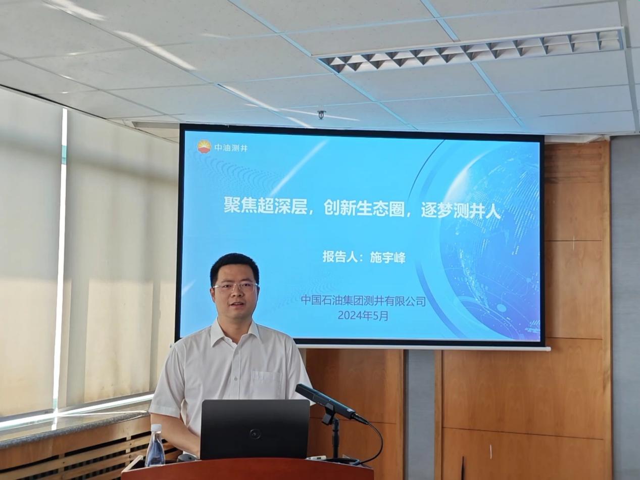 报告会上,施宇峰高工介绍了目前全球及中国深层-超深井油气勘探技术进展,以及塔里木盆地超深储层的地理位置、构造特征、形成机制、油气分布和油藏特点,总结了超深井高温高压环境下采集仪器、电成像、岩石物理、射孔以及装备研发等方面所面临的挑战,并提出了自己的见解。最后,施宇峰经理向同学们系统地介绍了中国石油集团测井有限公司的基本情况。会后公司师生与施经理展开了热烈讨论。