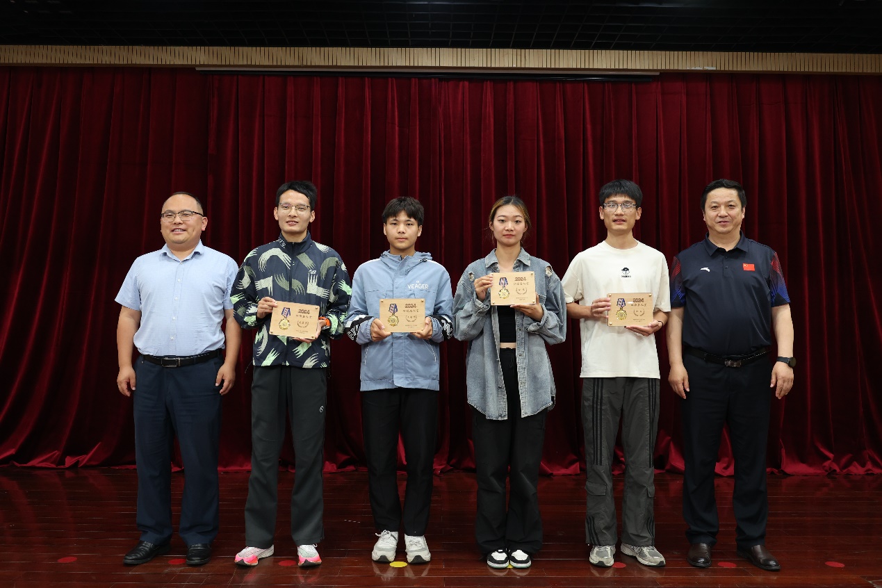 教师运动员代表张敏、员工运动员代表徐旺分别代表受表彰个人发言。