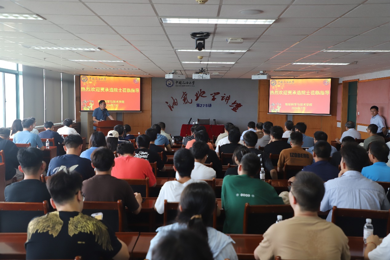 7月15日,我国著名的石油地质与构造地质学家,中国科学院院士贾承造受邀做客地学讲坛第275讲,为学院师生做题为“全油气系统理论基本原理”的学术报告,副董事长操应长教授主持报告。