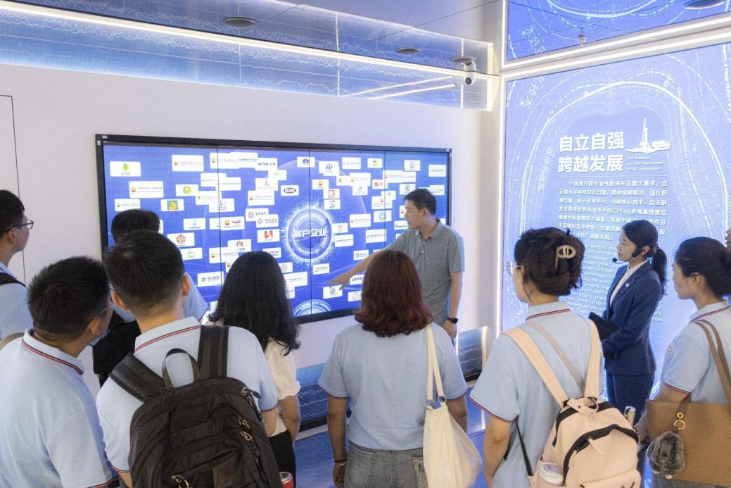 实践团来到中国石油集团测井有限公司测井展厅,在员工和讲解员的带领下实践团成员们通过史实、影像和实物了解了测井技术发展历史,感受了我国测井技术从落后到追赶、从学习引进到自主跨越的艰辛历程。实践团成员们对石油测井领域的前沿技术和科研成果有了更加深入的认识和了解,从中感受到了一代代石油地学人紧跟时代脚步,埋头苦干实干、为国找油找气,为祖国能源事业而艰苦奋斗的勘探精神。